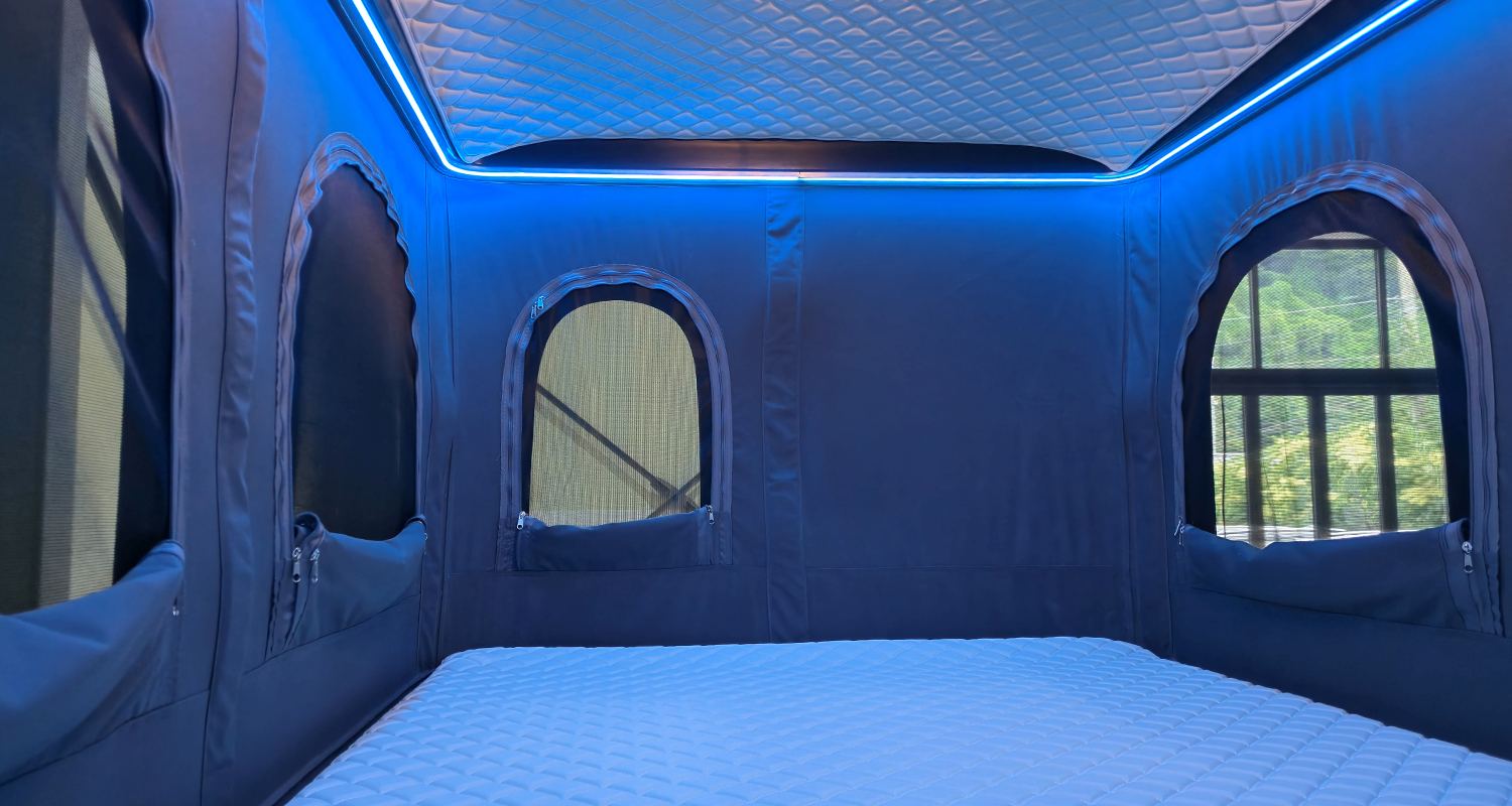 4ÁÖ½Ä ·çÇÁ ÅÙÆ®¿¡ 2°³ÀÇ ´ëÇü âÀ¸·Î ÅÙÆ® ¾È¿¡¼ °³¹æ°¨ ÃÖ´ëÈ
